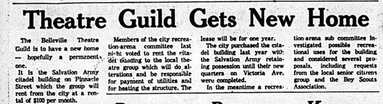 The Belleville Theatre Guild has been in existence since 1951 and has occupied the Pinnacle Playhouse property at 256 Pinnacle Street since 1969. Members of the Guild recently transferred their collection of organizational records to the Community Archives.