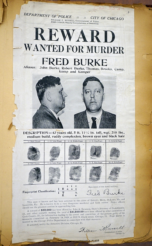 These notices were produced at the height of Prohibition in the USA and they include one for Fred Burke, the man suspected of committing the Valentine's Day Massacre in Chicago in 1919.