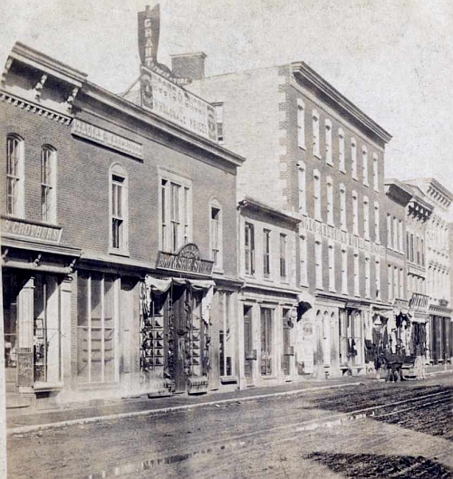 His commercial travels took him to Belleville in 1873, when he breathed his last in Hambly's Front Street saloon, thousands of miles away from his wife and children. The saloon is the two-storey building in centre of this photograph from the 1860s: