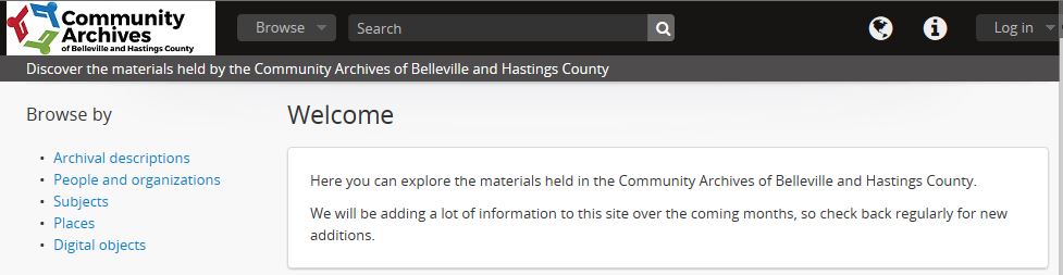 There are currently over 100 archival collections available in Discover, with more being added every day. Recent additions include the papers of Gerry Boyce and the County of Hastings.