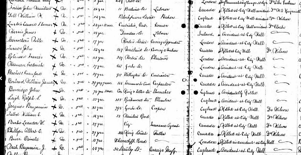F. Heaman, C. Beckit, E. Luxton, N. Carrothers, R. Leigh, S. Harris, A. Phillips, L. W. Burk, W. J. Smith, W. C. Talbot, John Turner, Benjamin J. Nash, J. W. Borland, Frank Robinson, W. H. Dell, Stephen Williams, Ben Jacques, O. Bruce, James McLean, John Fellows, John Burridge, Allen Towe, Unknown Man.