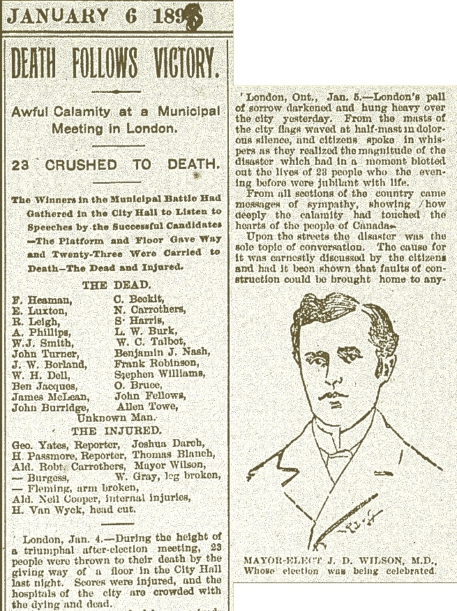 On January 6th, 1898, the Weekly Intelligencer reported on a disaster which had taken place in the city of London, Ontario, three days earlier: