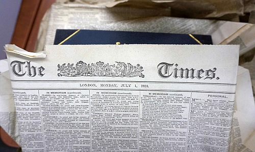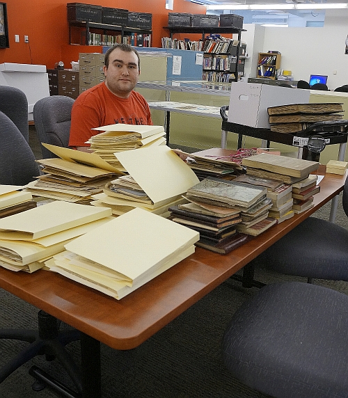You can read more about Gilbert Parker in this month's newsletter. Our next task is to arrange the records and describe them. Archives volunteer and history student Trevor Parsons is making good progress on arranging the records. Here he is in the reading room, surrounded by Sir Gilbert's papers: