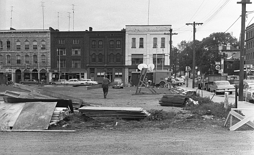 The old Post Office was taken down in the early 1960s and replaced by a new building for The Ontario Intelligencer. Here is the empty lot, looking north, in June 1964. The Quinte Hotel is just visible on the right of the image.