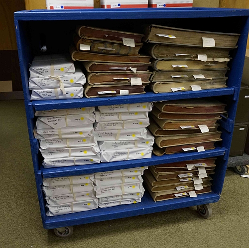 Covered wooden carts were used to move the archival volumes and small boxes, which had all been carefully colour-coded to show which vault they were going in to at the Library.