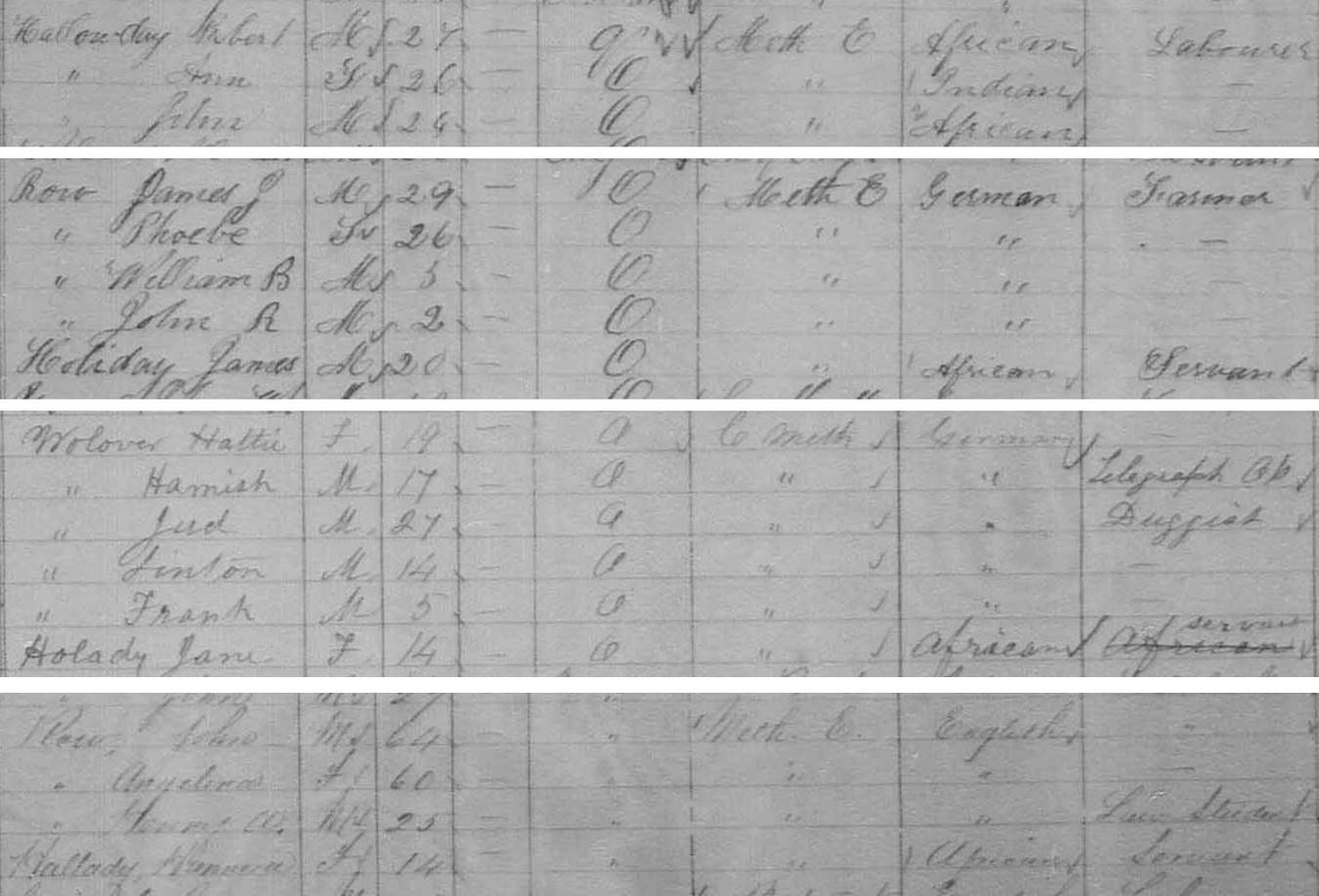 Holaday, Jane | F | 14 | Ontario | C. Methodist | African | Servant |