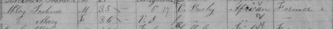 McCoy, Joshua | M | 35 | Ontario | Presbyterian | African | Farmer |