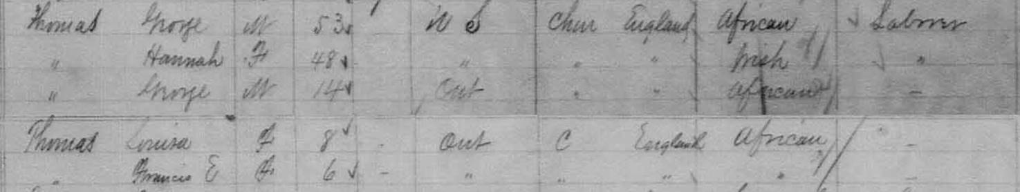 Thomas, George | M | 53 | USA | Church of England | African | Labourer |