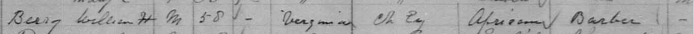 Berry, William Henry | M | 58 | Virginia, USA | Church of England | African | Barber |