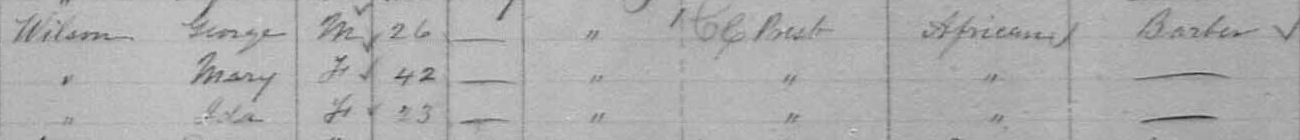 Wilson, George | M | 26 | Ontario | Presbyterian | African | Barber |