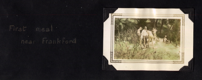 At last we reached Frankford and stopped above the village for dinner. Breakfast was an event of so remote a distance that a dinner of beans, fruit salad, bread and tea touched the proverbial spot to a T.
