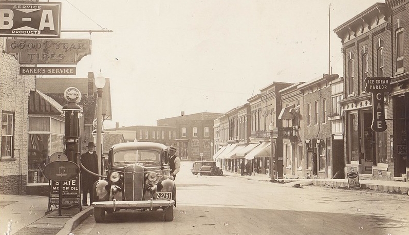 This photograph, taken in Mill Street, Stirling, is the last known image of Father Joseph Mancini, an Italian-born Toronto priest. He was discovered by his housekeeper at his Oak Lake summer cottage, bludgeoned to death in 1941. The car in the photo was later found in North Bay. The culprit was never apprehended and the case remains open.